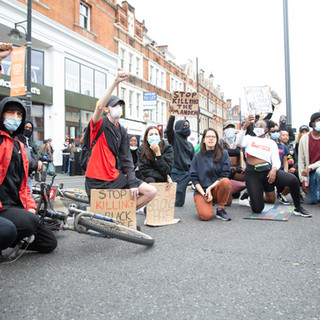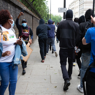 The organisers had COVID signs, they encouraged people to distance themselves, they were giving out water, gloves and masks. It felt very well organised and thought through. Each area had a representative who would give information to the crowd, keeping people informed. At one point the family of Mr Floyd were cheered via the medium of facebook live as they watched London's efforts through a mobile phone. Legal observers were present and gave out cards to support people if they got arrested.